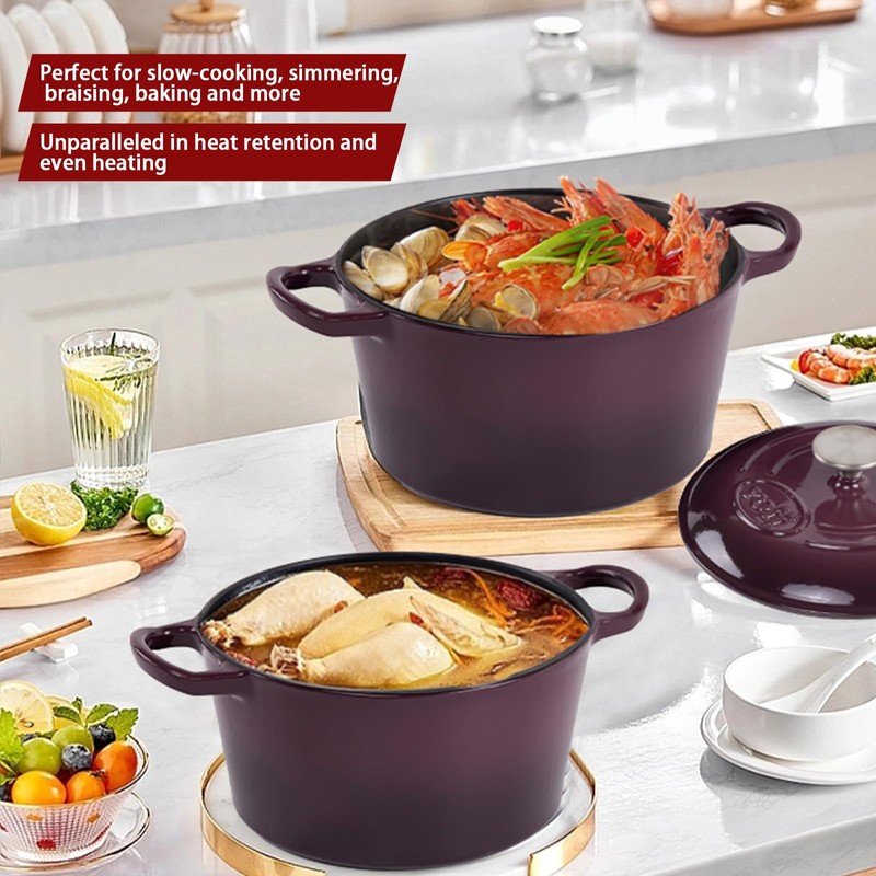 - 💯 Debris Resistant - Enameled cast iron cookware finishes are beautiful, chip-resistant and highly durable, with stainless steel knobs. Unlike regular cast iron, enamelled coated cast iron cookware does not rust or discolor with time, use, or water.
