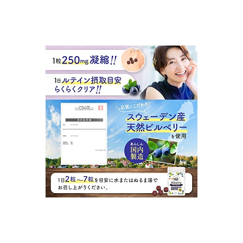 - ✅ 1粒あたり250㎎!高濃度高純度ビルベリーエキス