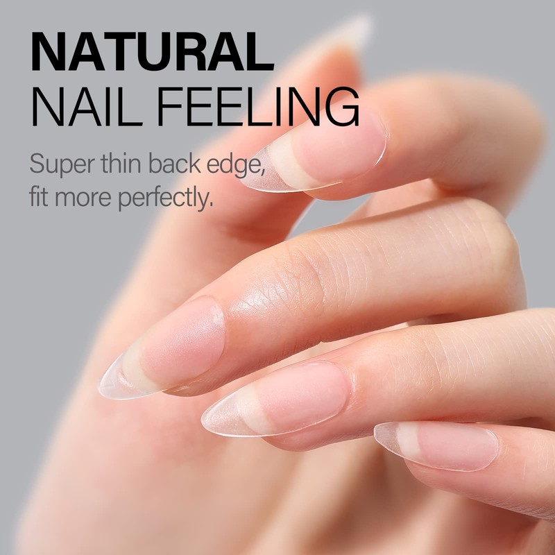 - NATURAL FIT EFFECT - Our soft gel tips feature “ Thin back edge, thick front edge”. The thinner back edge can make the full nail tips fit your nails better, which will not make you feel uncomfortable. Also, the clear nail tips are more breathable, which will not cause burden and pressure on your fingers; The thickened front edge makes it not easy to break or bend, having longer lifespan. Just like your natural nails, do whatever you want!