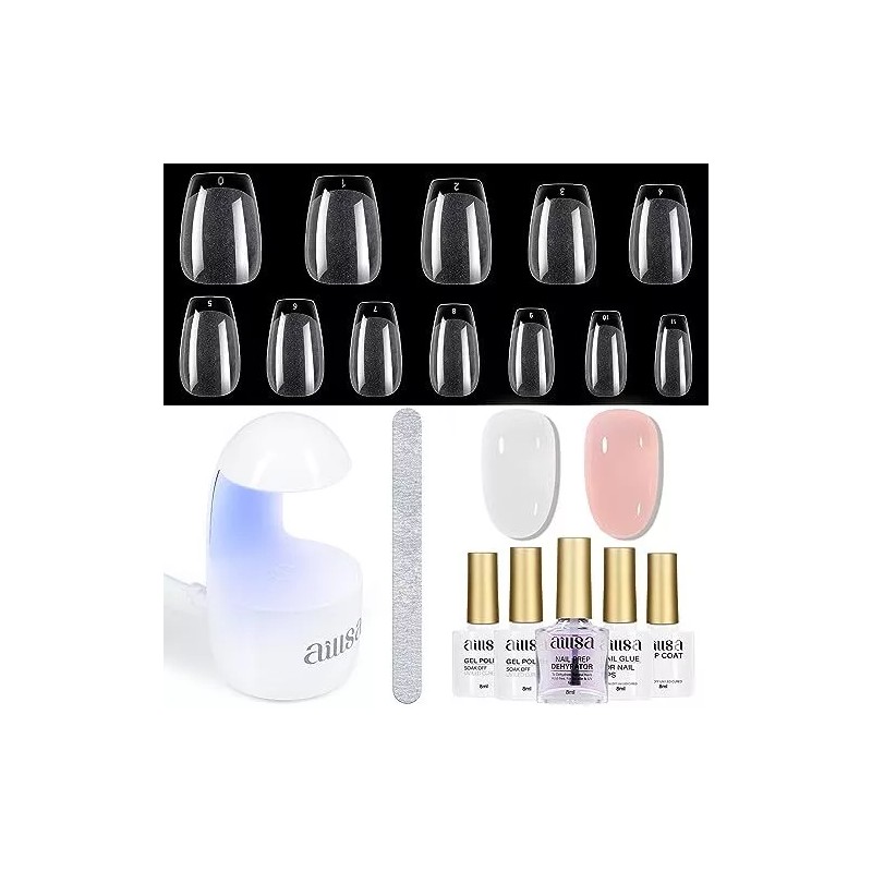 AILLSA Soft Gel Nail Kit Short Coffin Nail Tips 240pcs with 2 In 1 Nail Glue ...