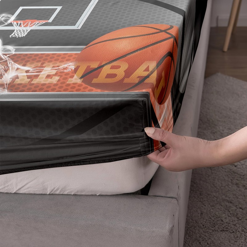AILONEN 3D Basketball Fitted Sheet Full Size, Sport Basketball Player Bedding Set for Boys Kids Teen,Basketball Sports Bed Sheet Set,1 Fitted Sheet 2 Pillowcases,3 PCS,Soft Microfibre