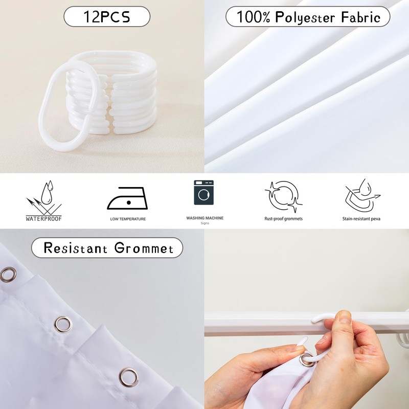 - Easy Installation & Maintenance: Each shower curtain includes 12 hooks, making installation a breeze. The reinforced buttonholes ensure secure and stable hanging, preventing the curtain from slipping or falling. They are designed for hassle-free machine washing and quick drying, allowing you to enjoy a fresh and clean shower curtain whenever needed
