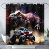AILONEN Boys Dinosaur and Truck Shower Curtain,3D Starry Dinosaur Themed Kids Bathroom Curtain,Monster Jam Truck Boys Waterproof Bath Curtain, 72" W x 72" H