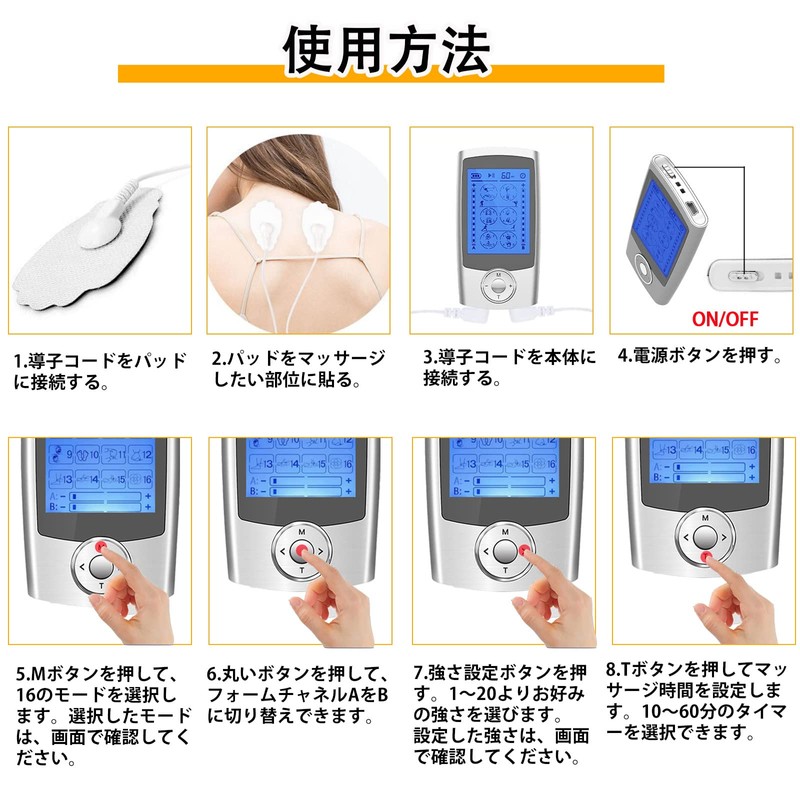 - 【優れた機能性】16種類のモードがあり、20段階の強度調節が可能。A/B 独立したデュアルチャンネル、各チャンネルの異なる強度設定で操作できます。個人使用だけでなく、家族とも一緒にしようできます。※初めて使用する場合、必ずレベル1に設定してご使用ください。