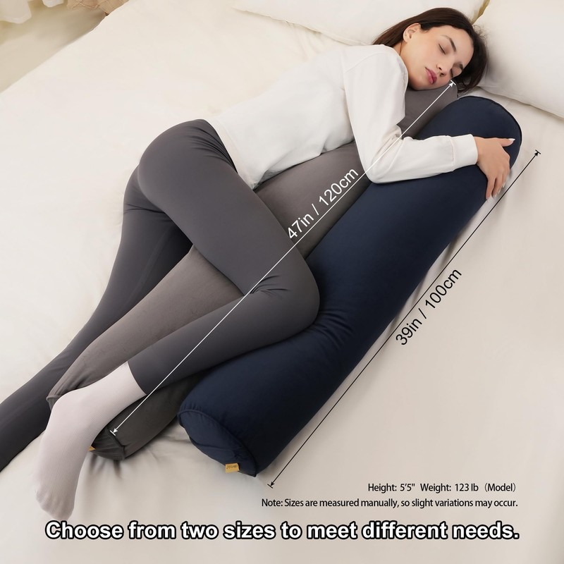 - Long Body Pillow for Adults – Available in 47"x 7.87"and 39"x 7.87"to fit your needs. Full-body support for side sleepers, reducing pressure on spine and joints.