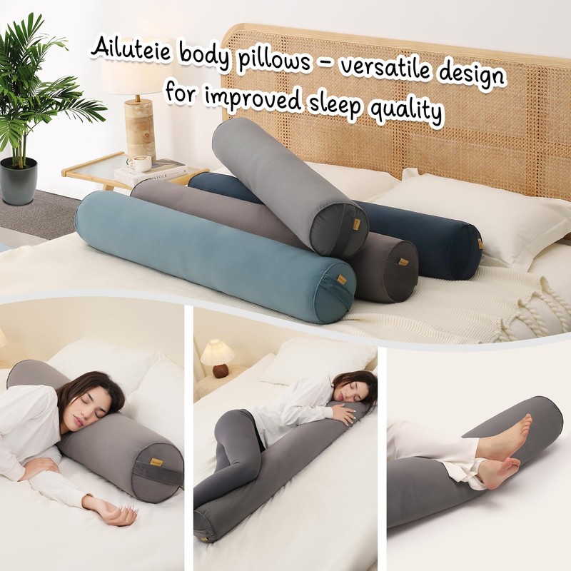 Ailuteie Long Pillow for Bed – Round Bolster Pillow for Adults, Body Pillow for Sleeping, Ergonomic Support,39 x 7.87 Inches,Steel Gray