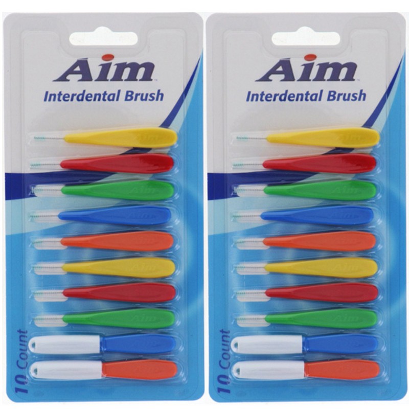 Aim Interdental Floss Brush Removes Plaque Between Teeth Pack Of 2 - 10Ct Each