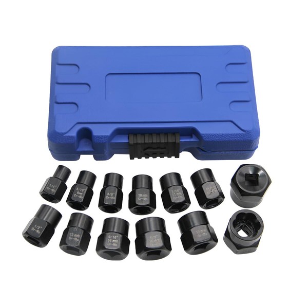AIMALL 13 Piece Impact Bolt & Nut Remover Set, Extractor Socket Tool for Stripped or Damaged Nuts, CR-MO Steel, Includes Case, 1/4 to 3/4 inch Sizes