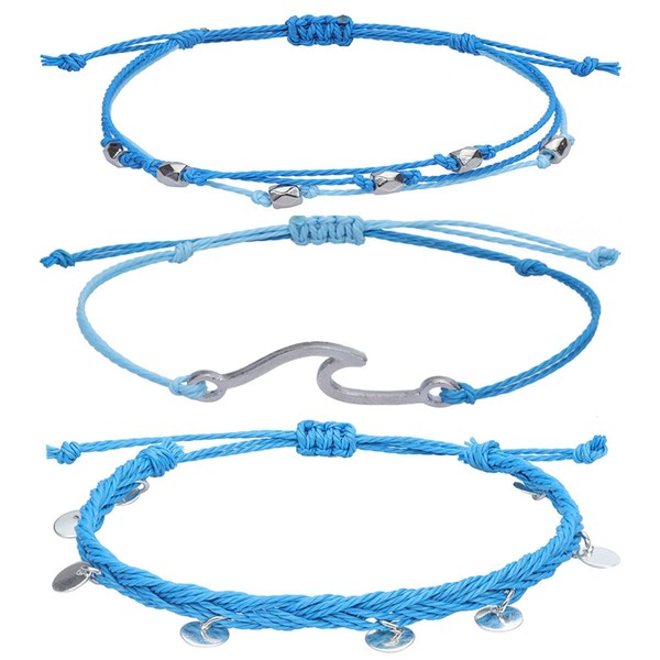 AIMALL 3 PCS Bohemian Style Wax Woven Wave Bracelet and Anklet Set, Women's Three-Piece Adjustable Jewelry
