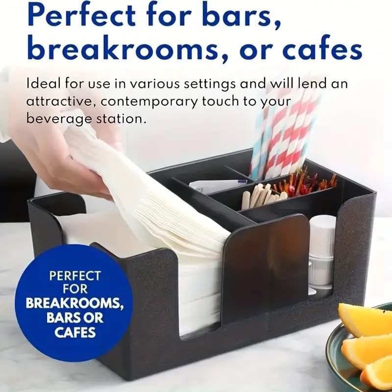 • Efficient Space Organization: Keep your coffee station or bar neat and tidy with separate compartments for cups, straws, napkins, and other essentials, saving time and boosting efficiency. 🗂️