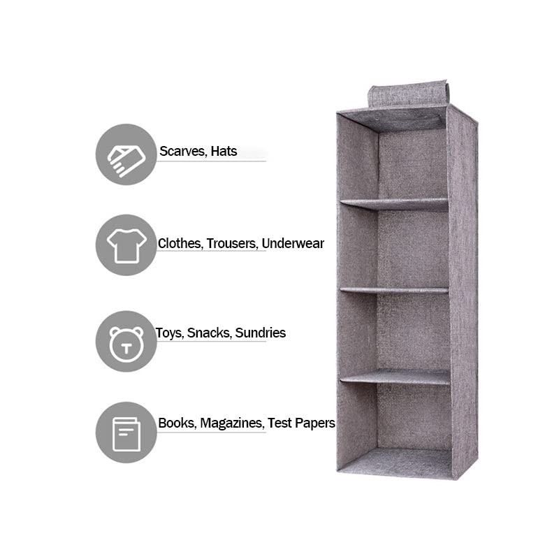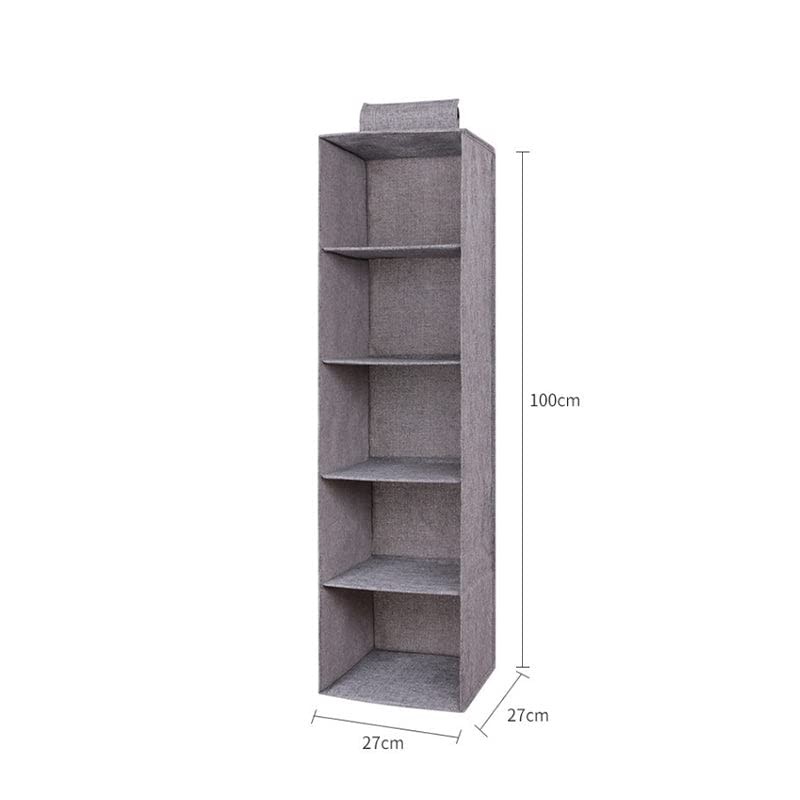 AIMALL Hanging Wardrobe Organiser – 3/4/5 Layer Clothes Storage Shelves, Space-Saving Garment & Shoe Tidy, Cotton Linen Fabric with PP Board Support, Grey