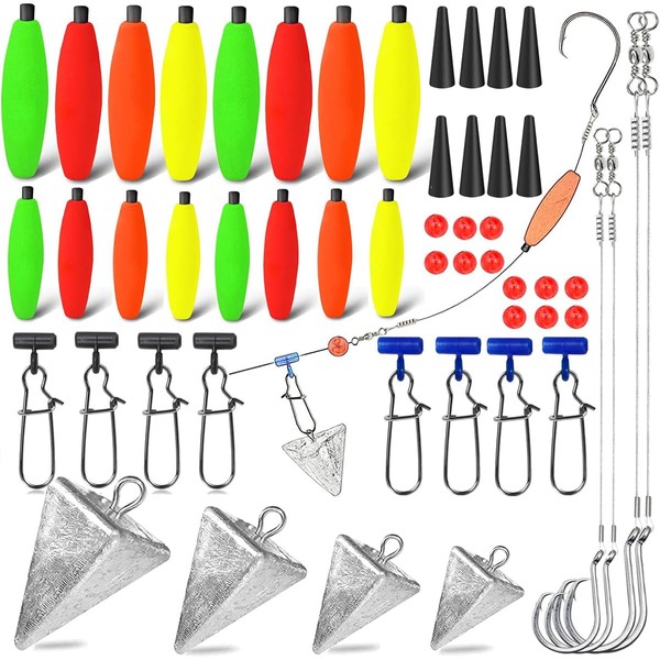 - 🎣 Complete Fishing Kit for Surf Fishing: This 78-piece set includes everything you need for saltwater surf fishing, from floats and fishing hooks to slide weights and snap swivels, ensuring you are prepared for any fishing scenario.