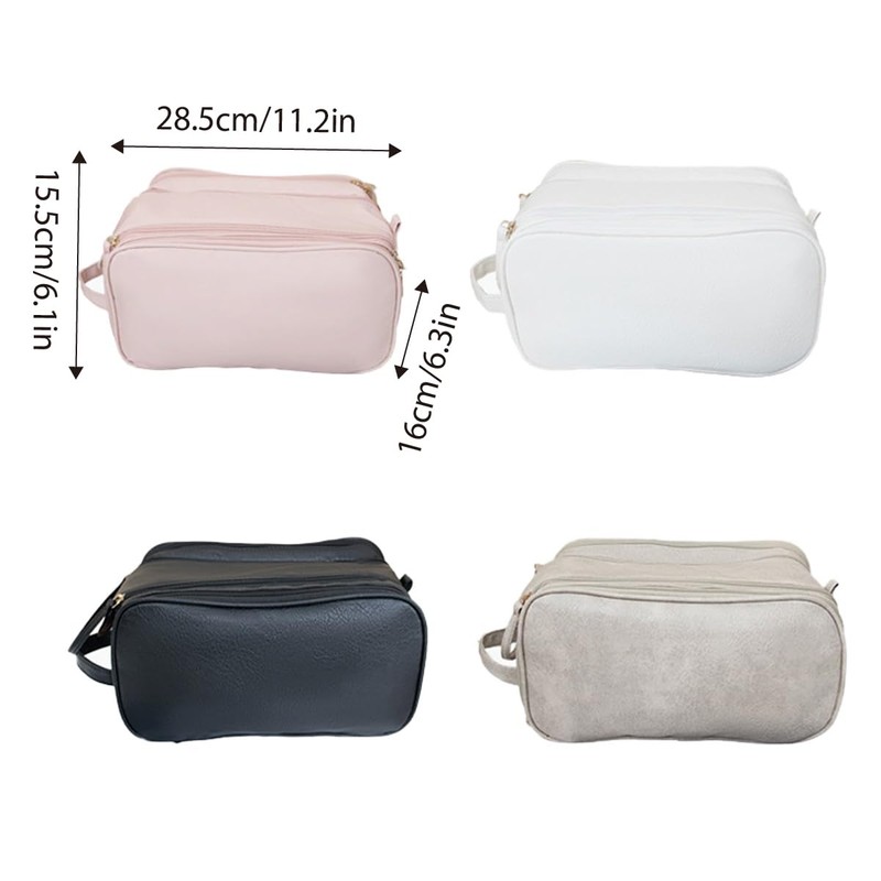 • 💧 Waterproof & Stain-Resistant: Made from high-quality PU leather with a waterproof and stain-resistant interior, this makeup bag is designed to handle accidental spills and leaks, ensuring your items stay protected.
