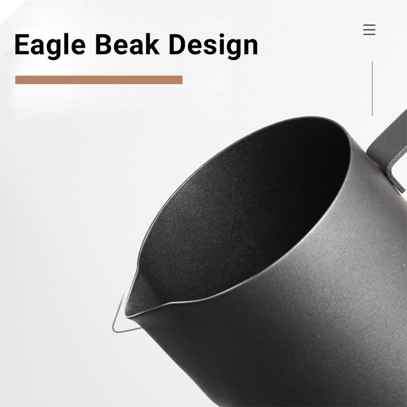 Easy Pour Spout: Specially designed for accurate and smooth pouring to create intricate latte art.