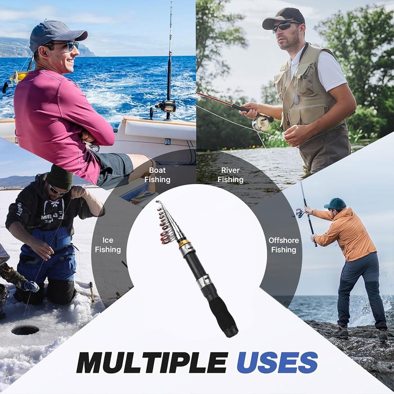 - 🌊 Versatile Use for Freshwater and Saltwater Fishing Whether you’re fishing in the ocean, lake, or river, this telescopic rod is designed for both saltwater and freshwater use, suitable for beginners and experienced anglers alike.