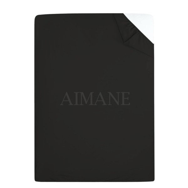 AIMANE® Non Iron Percale 4FT Small Double Fitted Sheet Poly Cotton Easy Care Non Iron Percale 4FT Fitted Bed Sheets Small Double (Black)