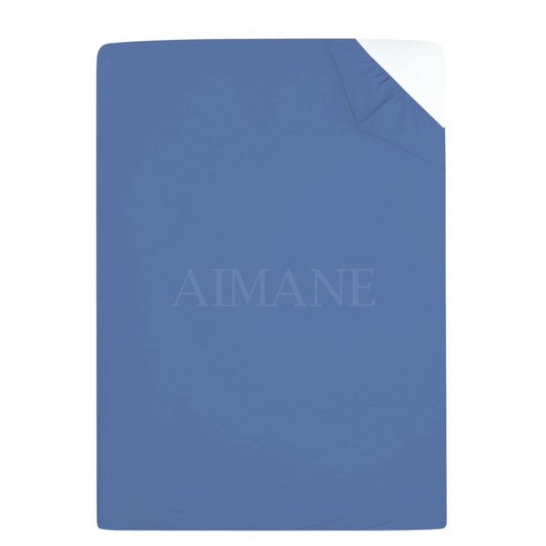 AIMANE® Non Iron Percale 4FT Small Double Fitted Sheet Poly Cotton Easy Care Non Iron Percale 4FT Fitted Bed Sheets Small Double (Blue)