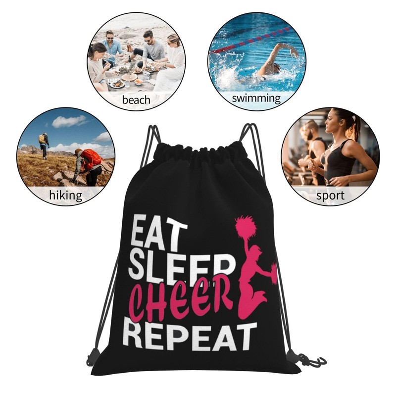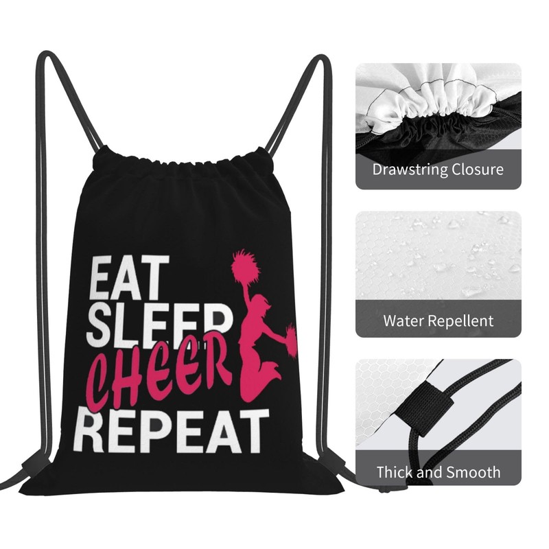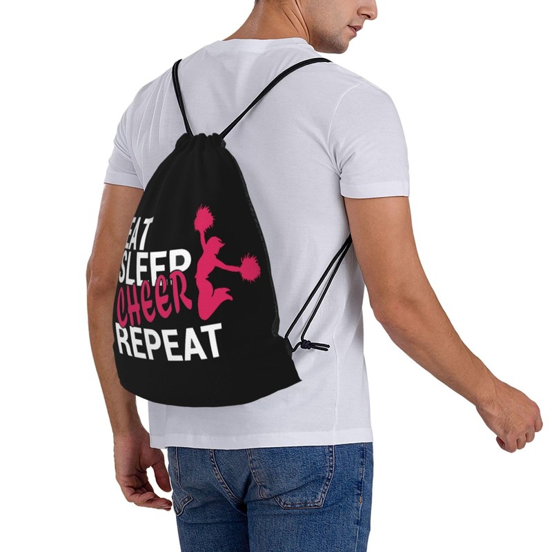 AIMASTZ Eat Sleep Cheer Repeat Unisex Drawstring Backpack Bag Sport Gym Swim Travel Sackpack