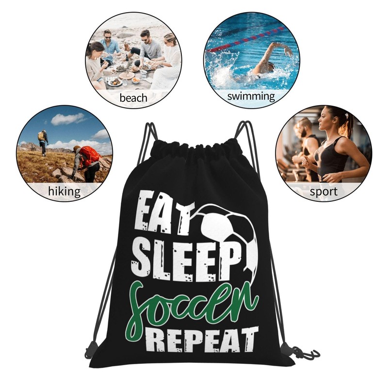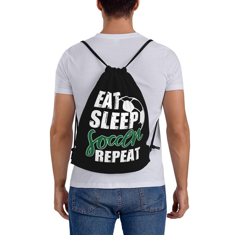 AIMASTZ Eat Sleep Soccer Repeat Unisex Drawstring Backpack Bag Sport Gym Swim Travel Sackpack