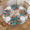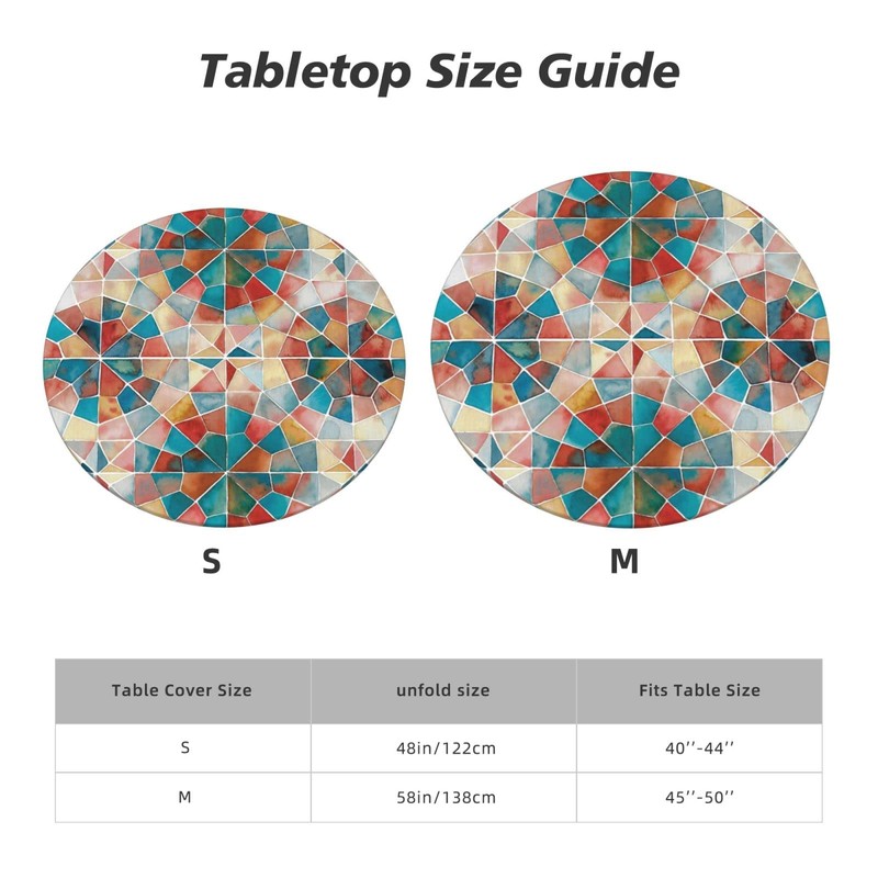 AIMASTZ Elastic Edged Round Fitted Geometry Mosaic Table Cloth Cover for Indoor Outdoor Kitchen Party, Waterproof Wipeable Tablecloth for 45"- 50" Tables,Medium