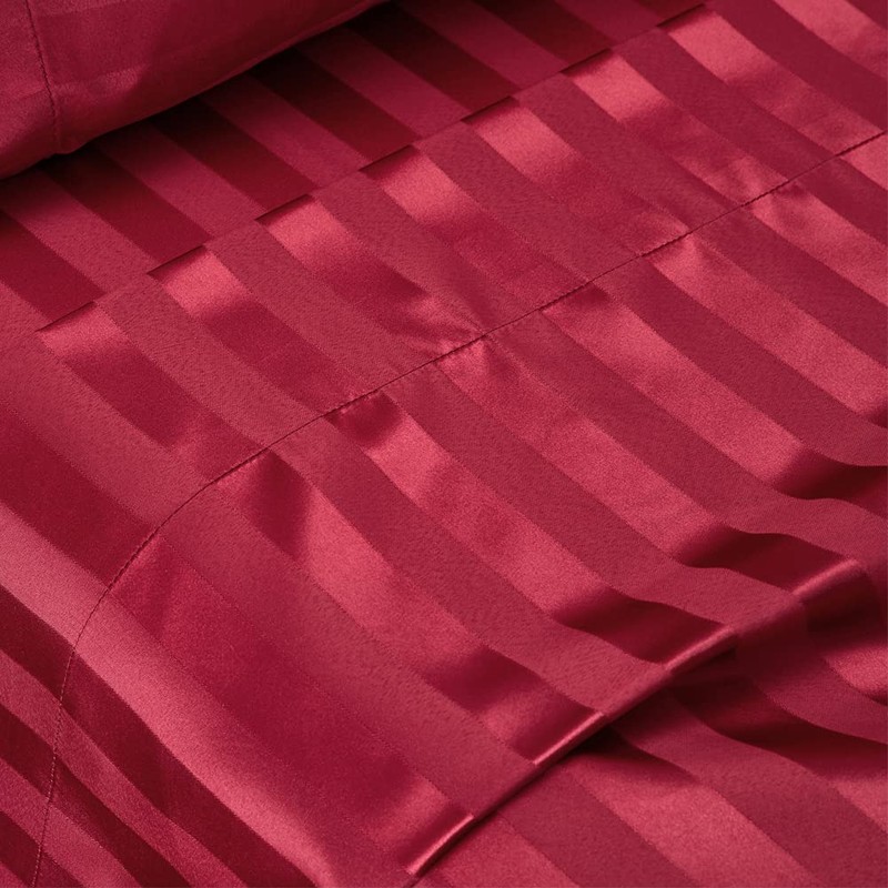 AiMay 6 Piece Satin Italian Style Bed Sheet Set Deep Pocket Stripes Super Soft 1800 Luxury Rich Silk 1 Flat Sheet 1 Fitted Sheet 4 Envelope Pillowcases Stain-Resistant Wrinkle Free (Queen,Burgundy)