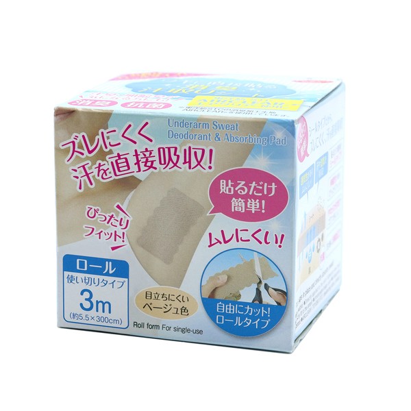Aimedia Deodorizing Sweating Sheet Stick directly to the Waki, Roll Type, Beige, 1 Piece (x1)