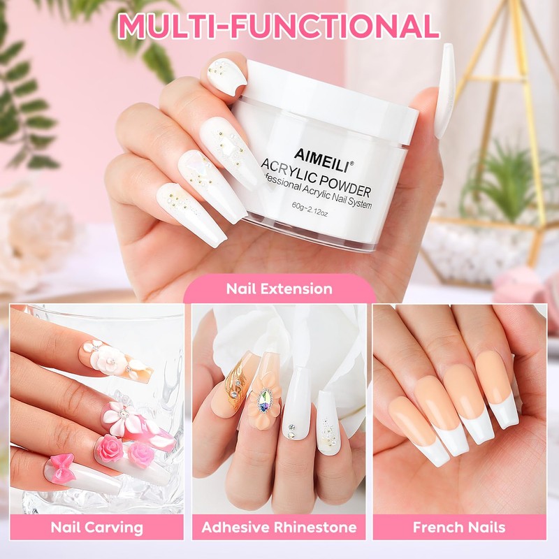 - 4 in 1: can be used for nail extensions, 3D nail carving, French nails and glue nail decorations on natural and artificial nails. In addition, this versatile acrylic powder can also be used as a dipping powder, so nail art enthusiasts can make various fashionable adjustments.