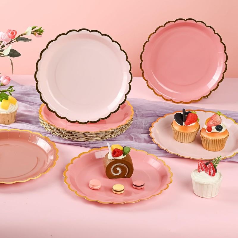 - Dusty Pink Paper Plates: Add a touch of elegance to your wedding, bridal shower, tea party, bachelorette party, or girl baby shower with these pink scalloped party plates