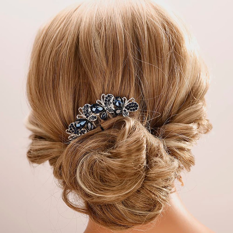 Aimimier Bridal Wedding Butterfly Crystal Hair Combs Decorative Rhinestone Headpieces Hair Clips Bride and Bridesmaids Hair Accessories for Women Girls(Blue)