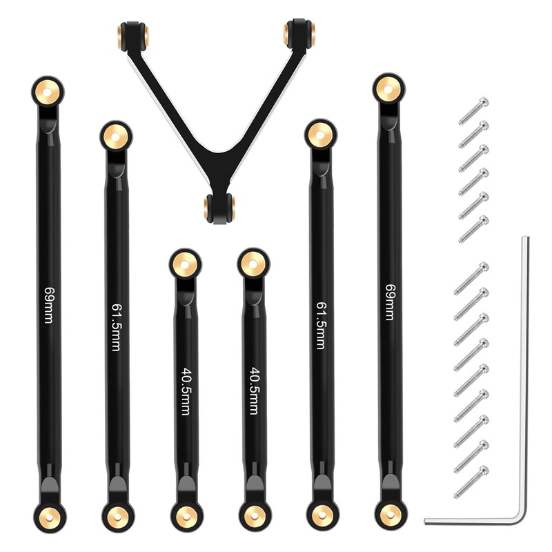 - √ Package includes:6 x RC suspension links, 1 x Y links with needed hardware (un-assembled ball joint and o-rings)