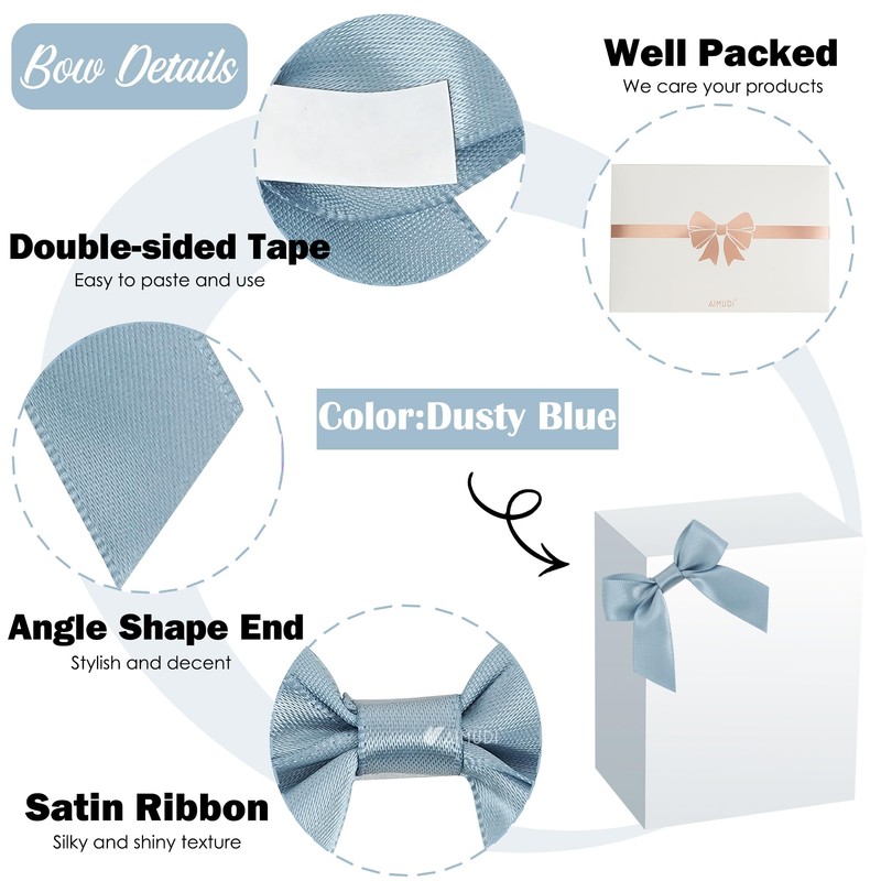 AIMUDI AIMUDI Dusty Blue Satin Ribbon Bows 2" Self Adhesive Satin Bows for Gift Wrapping Premade Ribbon Bows with Double-Sided Tape for Making Crafts Baby Shower Birthday Party Wedding Decorations, 50 PCs
