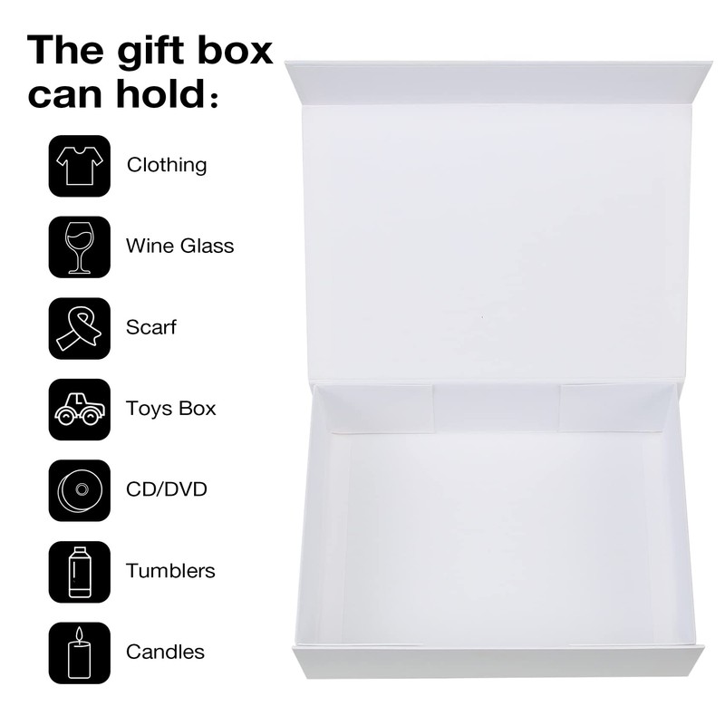 - Sturdy & Reusable - these white boxes are constructed with heavy duty book board, built in a concealed and powerful magnetic closure, which allows the box to be opened and closed repeatedly without any problems.