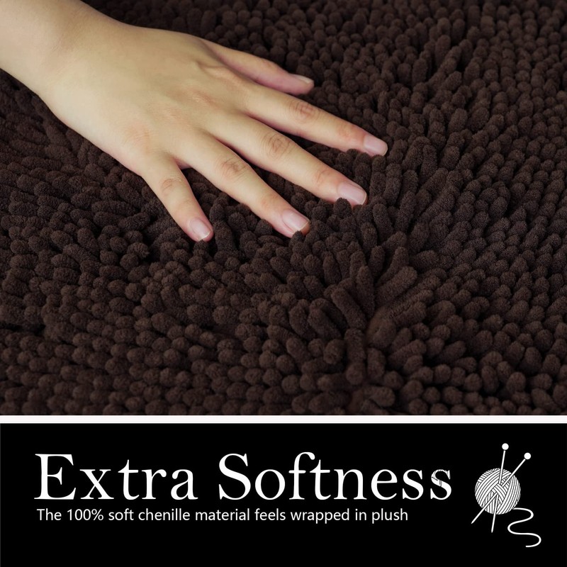 - Super Absorbent--Bathroom mats are made of super absorbent microfiber piles. When you step out of the tub, shower or get ready in the sink, thick chenille piles quickly absorb moisture from your feet and keep the floor clean.