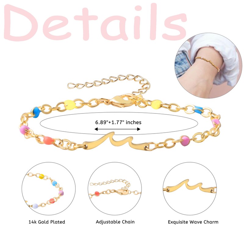 - Material:Wave bracelet charm is made of stainless steel,14k gold plated chain, enamel beads is slightly different.Inspirational bracelet offer an affordable price and high quality.