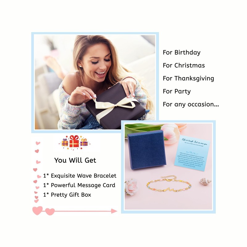 - Inspirational Gifts:Wave bracelet packaged with message card and gift box. Unique design with encouragement gifts, making your gift special. Inspirational gifts for women on Christmas, Anniversary,Birthday, Thanksgiving Day, daily wear in any occasion or decorations.