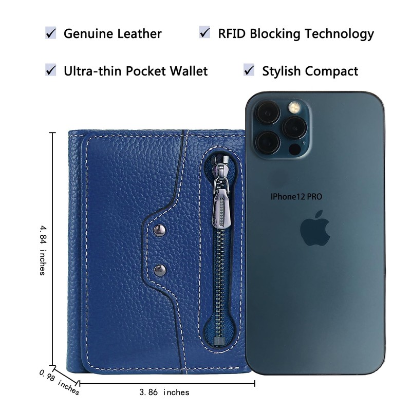 AINIMOER Cartera pequeña de cuero para mujer, delgada y compacta tarjetero con bloqueo RFID para monedero, cartera Rfid, Bloqueo Rfid azul encerado, Una talla