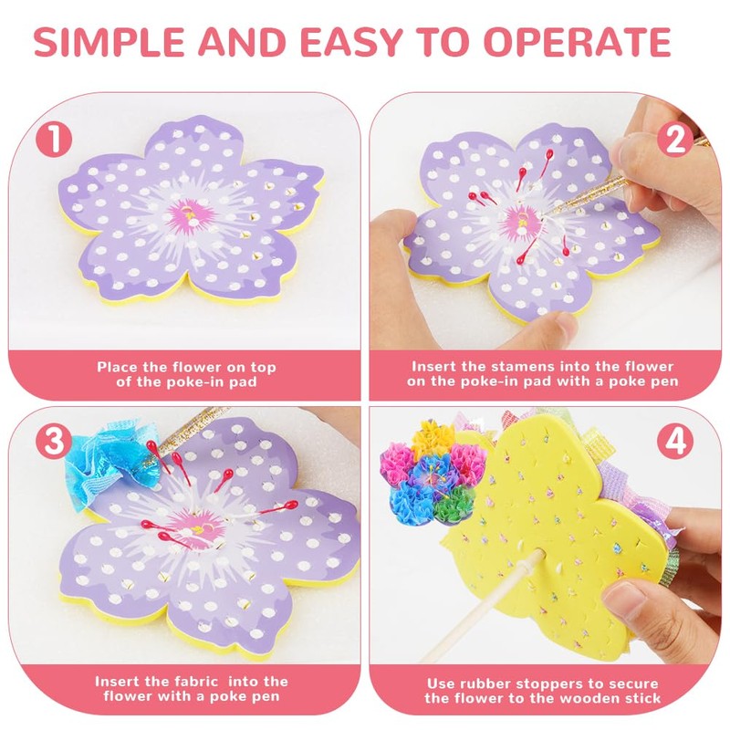 - FLOWER STICK PAINTING KIT AINIV craft kits include 800 fabric squares, 10 wooden flower stems, 2 pegsticks, 1 foam board, 8 foam flowers, 2 foam butterflies and a guide. Six different colourful glitter papers can be freely combined with flowers in different styles and colours, so children can design them according to their wishes