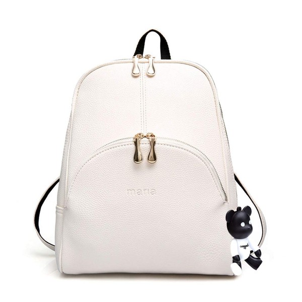 AINUOEY Women's Backpack Bags Women Elegant Bag City Backpack Handbag Vintage PU Leather 76602 1-Piece Set, White (not exactly white), Adjustable strap