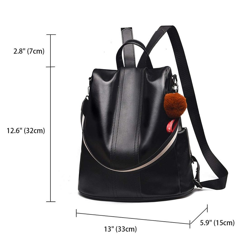 AINUOEY Women's Backpack Bags Women Elegant Bag City Backpack Handbag Vintage PU Leather 76674 1-Piece Set, black, Adjustable strap
