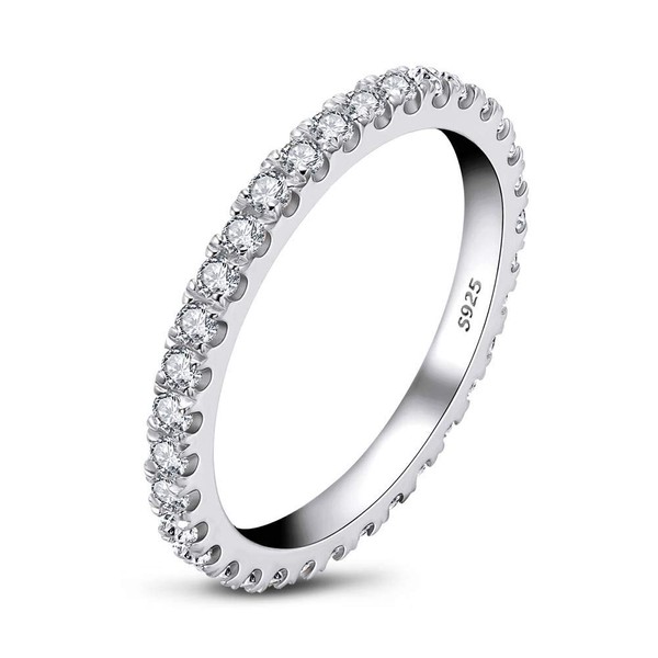 AINUOSHI Eternity Ring Women's 925 Sterling Silver Simulated Diamond Stackable Ring for Anniversary, Silver