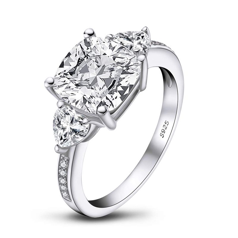 AINUOSHI Rings, Engagement Rings, Sterling Silver Rings, 3 Carat Rings, 3 Gemstone Rings, Square Rings, stone Zirconia, Cubic Zirconia