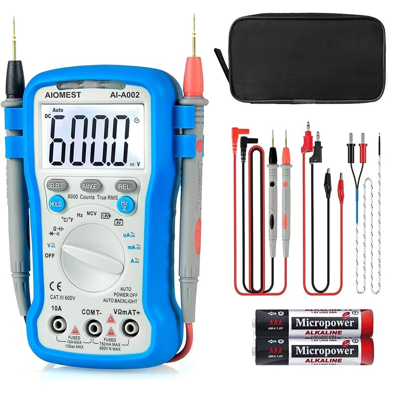 - ✔【Wide Range & Accurate】 AI-A002 Digital Multimeter measures DC Voltage 600.0mV ~ 600V, AC Voltage 6.000V ~ 600V, AC/DC Current 600mA ~ 10A, Temperature -4 ~ 1832℉, Frequency 9.999Hz ~9.999MHz, Capacitance 9.999nF ~ 99.99mF, Resistance 600 ohm~60M ohm, Duty Cycle 0.1%~99.9%.