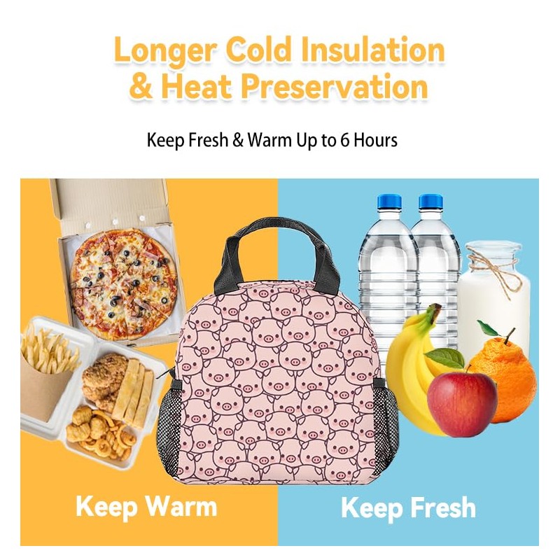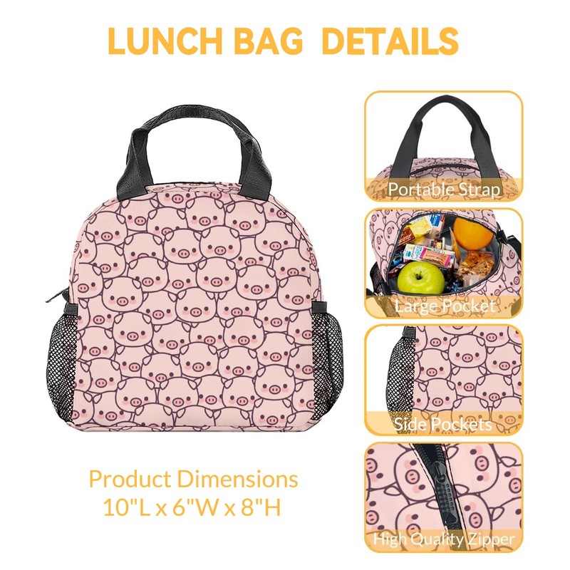 - Stylish Pig Pattern: Express your fashion style with the charming pig pattern on the lunch bag. Whether you're at school, work, or on a picnic, this eye-catching design will add a touch of fun to your everyday routine.