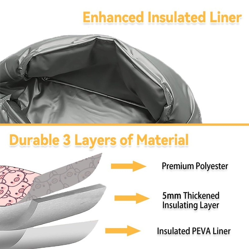 Easy to Clean: The interior features a thick aluminum foil with triple-layer insulation, making it effortless to wipe clean and maintain its freshness for everyday use.