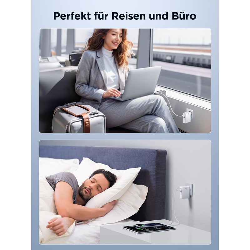 - 100 W iPhone fast charger: The USB C charger supports the fast charging functions Power Delivery and Quick Charge 3.0 with a total power of up to 100 W. The USB interface provides an output power of 3.1A/5V, while the USB-C interface provides a charging speed of 20W. This allows 58% of the iPhone 14 to be charged in half an hour.