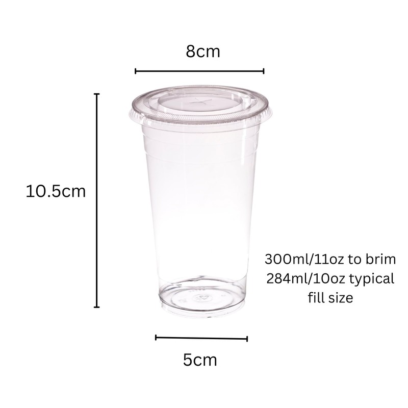 AIOS 50 x Recyclable PET Takeaway Cups with Flat Cross Hatch Lids. for Drinks on The Move. (300ml/11oz)