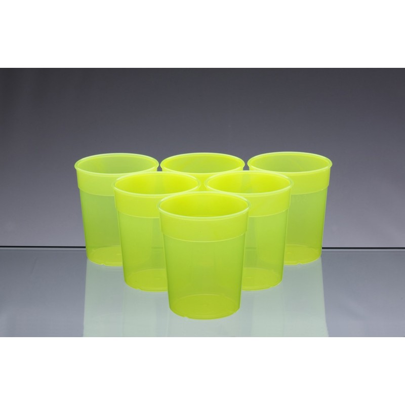 - Set of 6 stackable Neon Yellow Cups / Plastic tumblers / Beakers