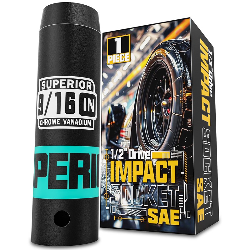 Aiourx 1/2" Drive Impact Socket, 9/16 inch Deep Socket, SAE, 6 Point, CR-V, for Car Repair, Loosen The Fastening Nut
