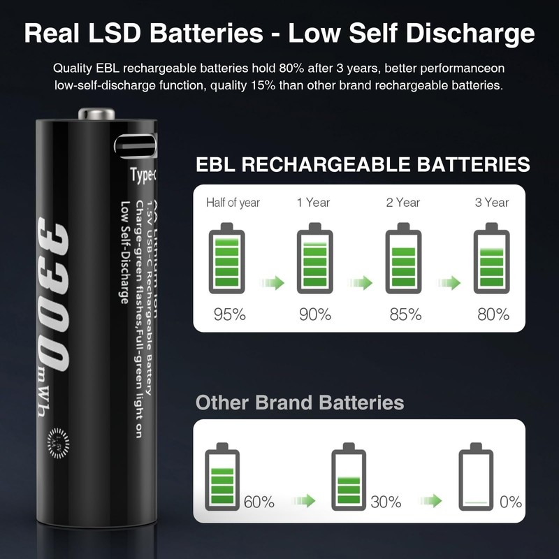 - 1200+ Charging Cycles: Compared with disposable batteries, rechargeable lithium batteries are more in line with modern battery solutions, helping you reduce electronic waste, save money and save time