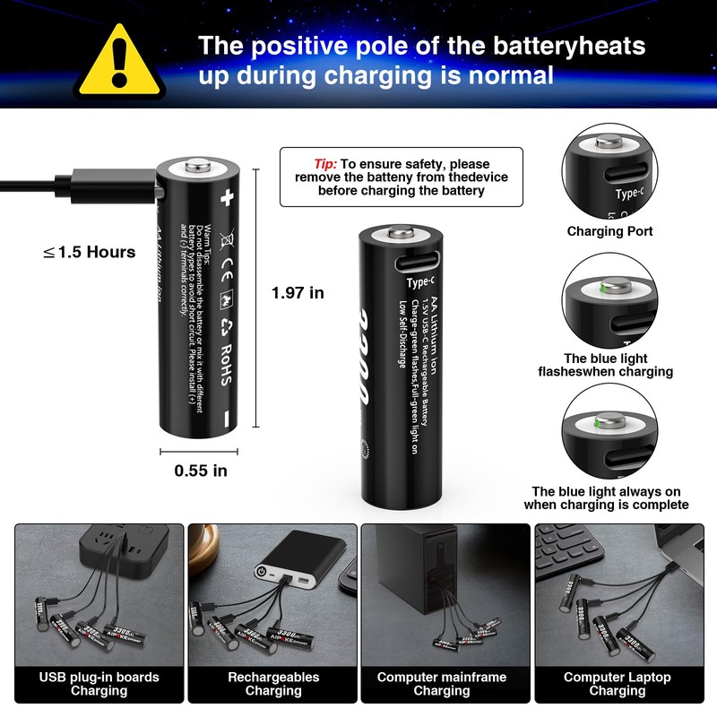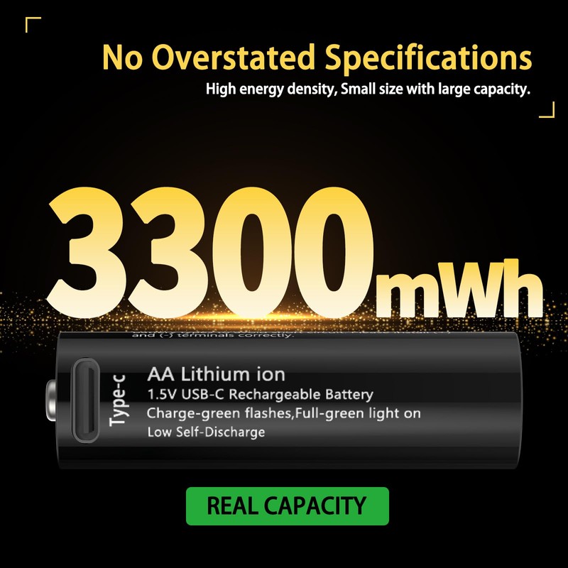 - Efficient Power Solution:The AIPEKE AA USB lithium battery is a game-changer in the realm of rechargeable batteries. With a high-capacity 3300mWh, this battery offers a reliable and long-lasting power source for your devices. Its 1.5V voltage ensures compatibility with a wide range of electronic devices, from cameras to toys and more